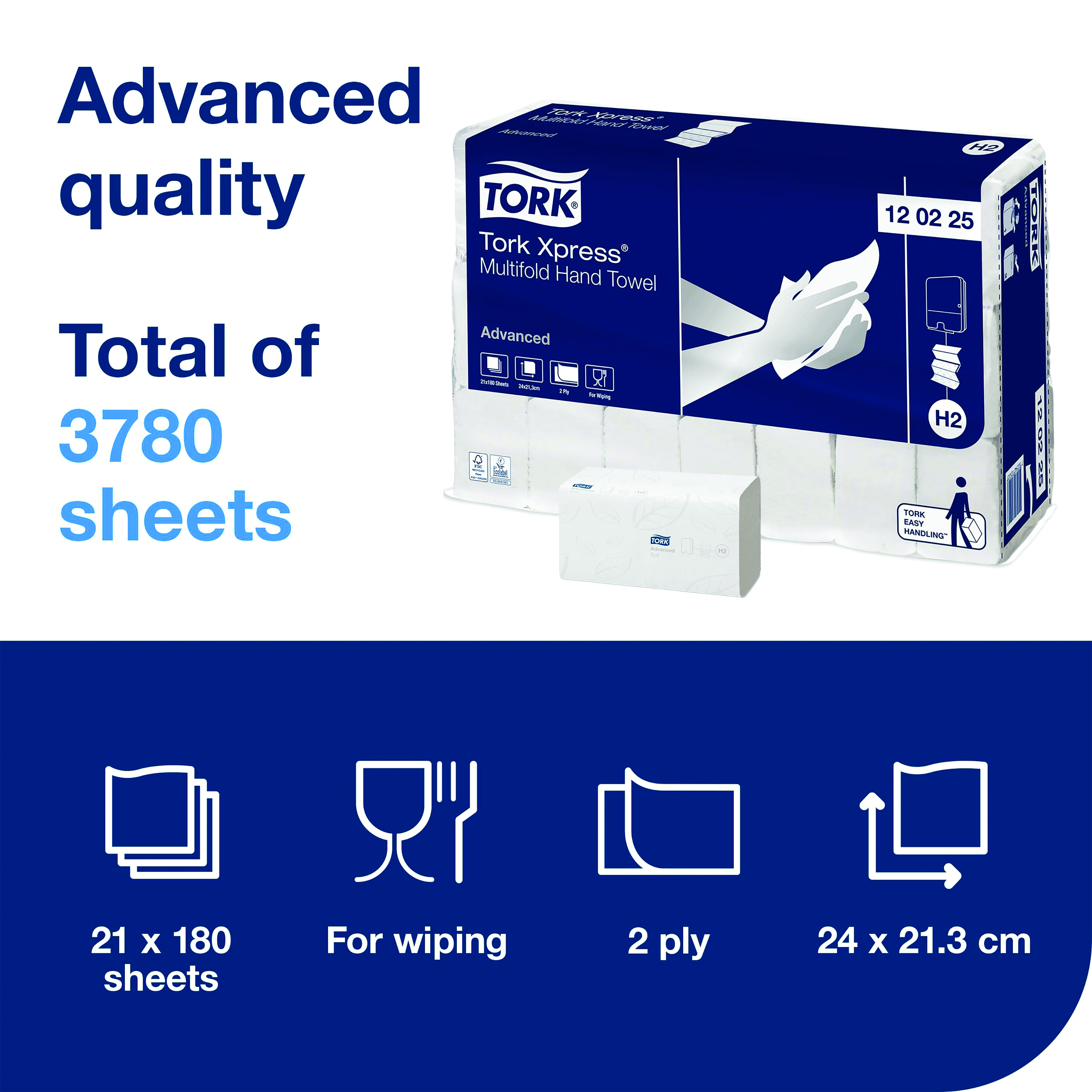 Tork Xpress Multifold Hand Towel H2 White 180 Sheets (Pack of 21) 120225
